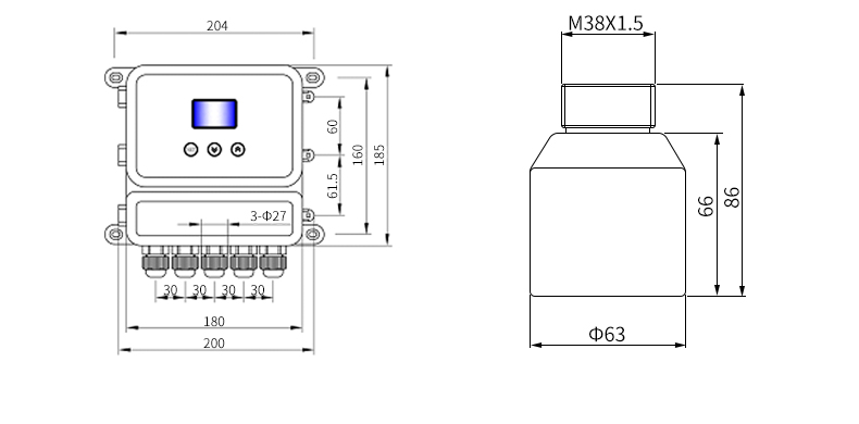具有溫度補償、窗口鎖定及抗干擾糾錯功能、介質聲速調整等功能(訂貨時選購)。