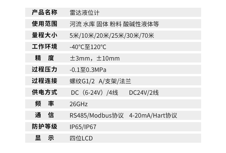 米科MIK-RD908雷達(dá)水位計(jì),26G高頻系列可用于需要發(fā)射角度小精度高的場合,一般5米以上用。