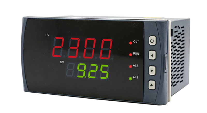 MIK-1100系列單回路數字顯示控制儀(簡易型),傻瓜式操作,0.3級測量精度,7款外型尺寸,雙四位LED顯示,可支持熱電偶、熱電阻、電壓(可開方運算)、電流(可開方運算)及變送器輸入,適用溫度、壓力、流量、液位、濕度等工業過程量的監測。支持2路報警功能,支持1路變送輸出或支持采用標準MODBUS協議的RS485通訊接口,1路DC24V饋電輸出,輸入端、輸出端、電源端光電隔離,100-240VAC/DC或20-29VDC開關電源供電,標準卡入式安裝,工作環境溫度在0-50℃,且相對濕度5-85%RH無凝結。